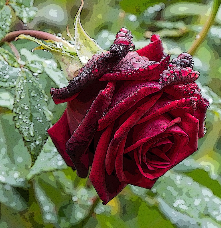 Red rose in the rain