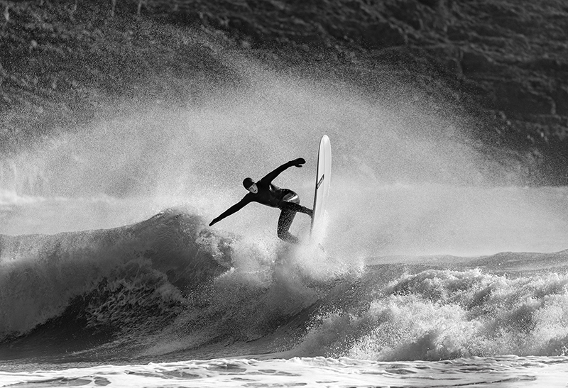Powerful surf photography, Lizzie. Both images in your gallery, and I guess a lot more in your portfolio, are fabulous. The monochrome of this one with the surfer up to the sky and a massive wall of a wave in the background is WOOOOWWWW!